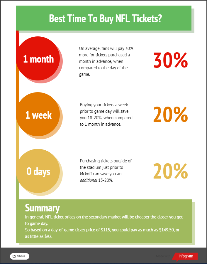 - Most fans don’t care about pricing models—they just want to know when to buy. But if you’re serious about saving money on NFL tickets, a little knowledge goes a long way.